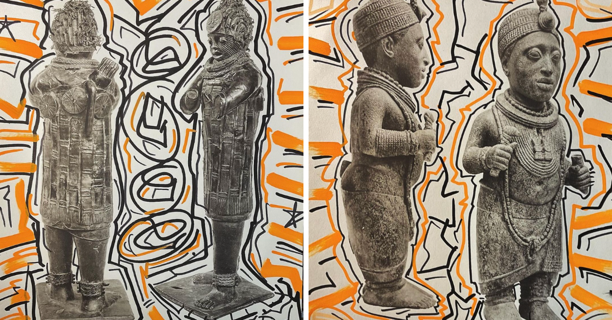 Dans « VOODOO« , Oeno explore l’art sacré des tribus africaines, un patrimoine souvent méconnu mais riche en symboles et en histoires. L’exposition se compose de 50 œuvres, travaillées au marqueur sur des photos issues de la série « Sculpture Africaine, les Univers Artistiques des Tribus d’Afrique Noire » par William Fagg. Chaque œuvre, d’une dimension de 23 cm par 27,5 cm, est proposée à la vente pour 250€, une occasion en or pour les collectionneurs d’acquérir un morceau d’histoire artistique.
