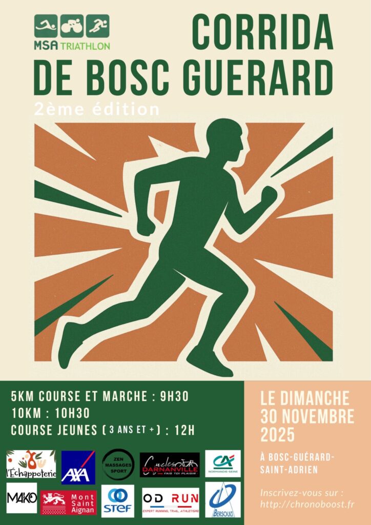 Le 10 km et le 5km de Bosc-Guérard-Saint-Adrien regroupent deux épreuves de courses sur route qui sont organisées par le club de MONT SAINT AIGNAN TRIATHLON.
