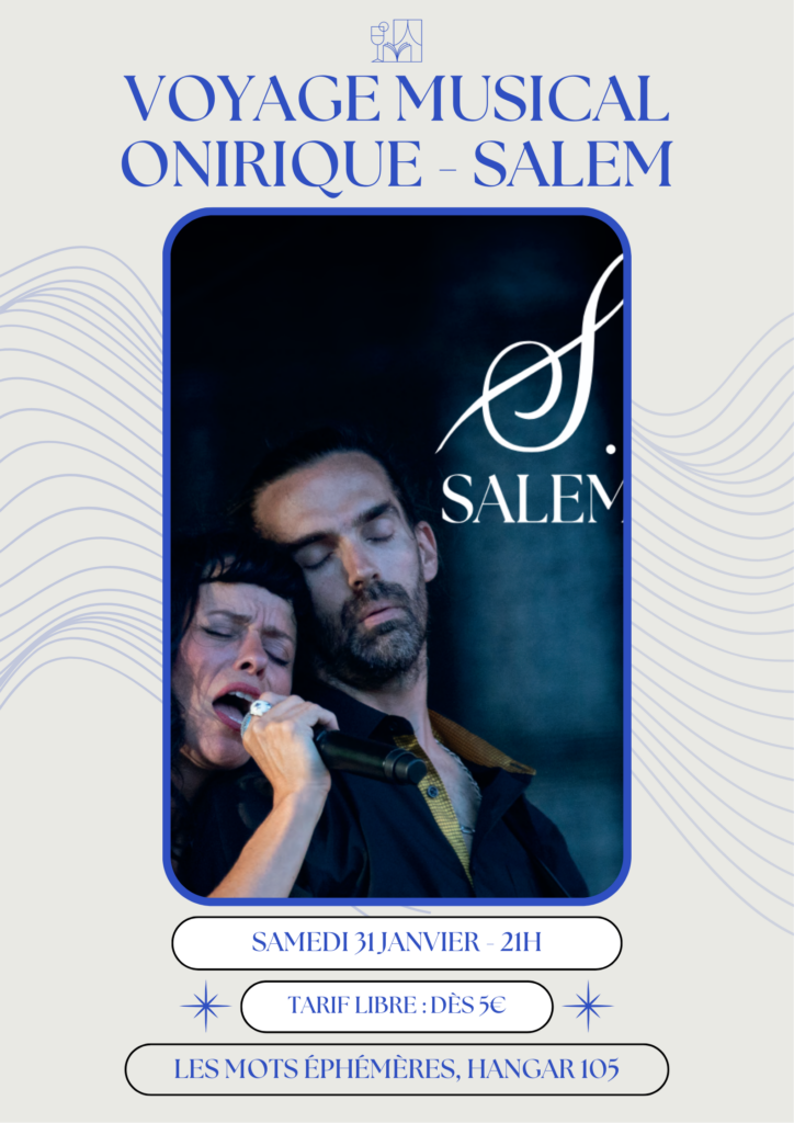 Salem est un duo normand formé par Alex Vétillard (chant, clavier) et Grm Lecouflet (basse). Leur rencontre a donné naissance à un projet rock alternatif singulier, où la richesse mélodique et percussive de la basse dialogue avec une voix envoûtante, puissante et subtilement écorchée. Depuis 2017, Salem éprouve son travail sur scène, nourrissant son énergie au contact du public.