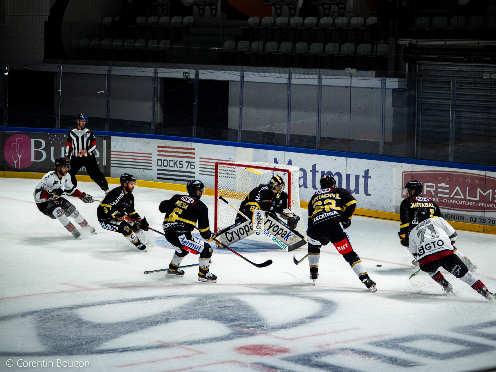 Les Boxers n’ont pas traîné pour marquer leur territoire. Dès le premier tiers-temps, Bordeaux ouvre le score (0-1) et plonge la patinoire dans le doute. Malgré les efforts des Dragons, la défense Bordelaise tient bon et les Rouennais retournent au vestiaire en étant menés. Un début difficile, mais rien n’était joué !