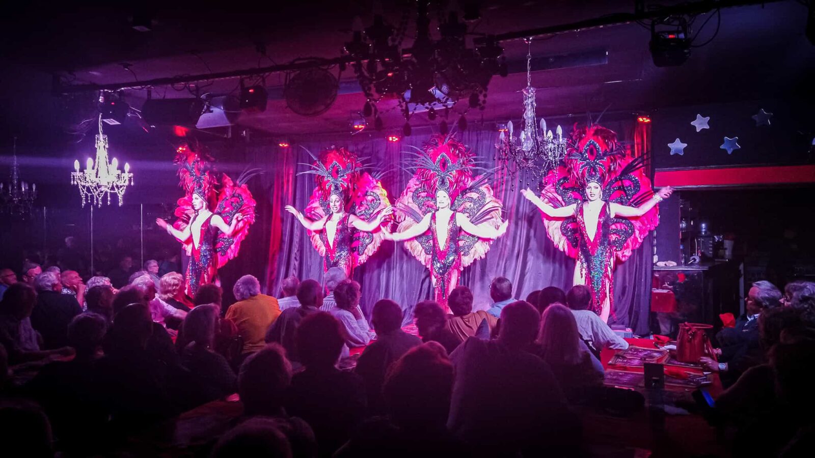 Pendant votre Déjeuner ou Dîner, tour à tour, Imitateur, Transformistes, Comédiens, Humoristes vous entraînent dans l’univers Burlesque du Cabaret, avec énormément de bonne humeur.